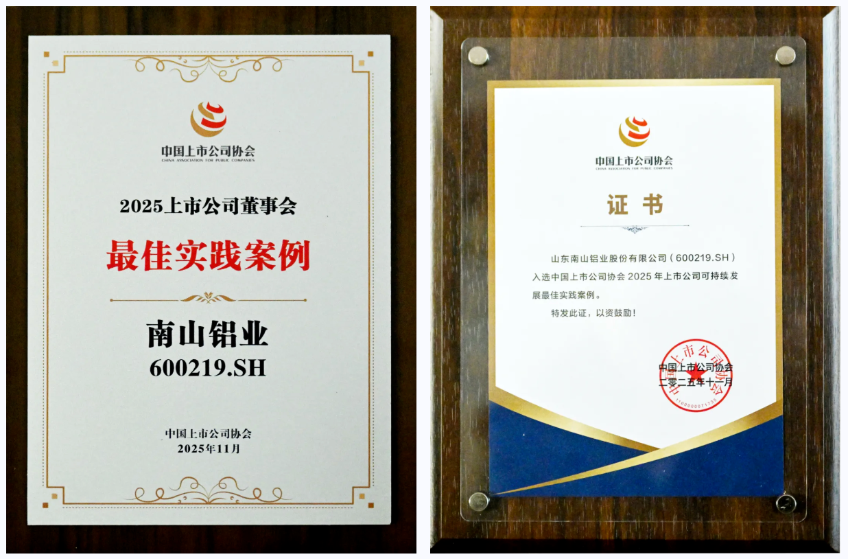 中上市公司協(xié)會發(fā)起的最佳實(shí)踐案例評選,旨在促進(jìn)上市公司合規(guī)有效運(yùn)作,提升治理效能,積極引導(dǎo)上市公司高質(zhì)量發(fā)展,發(fā)揮優(yōu)秀公司示范引領(lǐng)作用。2025年評選活動于今年7月啟動,在上海證券交易所上市交易并同時(shí)獲得兩項(xiàng)最佳案例的企業(yè)僅85家。南山鋁業(yè)此次斬獲雙“最佳”榮譽(yù),不僅是對公司董事會規(guī)范運(yùn)作、科學(xué)決策的高度認(rèn)可,更是對其將可持續(xù)發(fā)展理念深度融入發(fā)展戰(zhàn)略、踐行高質(zhì)量發(fā)展路徑的權(quán)威肯定。