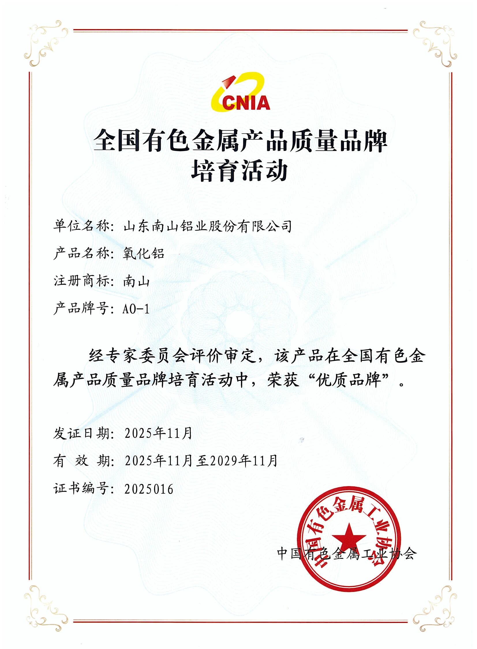近日,中國(guó)有色金屬工業(yè)協(xié)會(huì)公布2024-2025年度產(chǎn)品質(zhì)量品牌評(píng)價(jià)結(jié)果,南山鋁業(yè)(股票代碼:600219)生產(chǎn)的“南山”牌氧化鋁產(chǎn)品榮獲“優(yōu)質(zhì)品牌”稱號(hào)。這既是對(duì)公司長(zhǎng)期堅(jiān)持“質(zhì)量強(qiáng)企”戰(zhàn)略的權(quán)威認(rèn)可,也是其推動(dòng)行業(yè)向綠色化、智能化、高端化發(fā)展的具體體現(xiàn)。