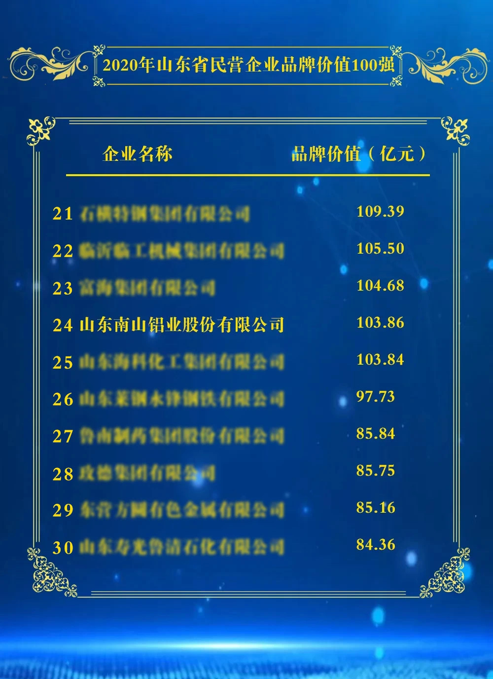 在各項(xiàng)品牌價(jià)值排行榜中,南山憑借自身企業(yè)品牌價(jià)值實(shí)力攬獲多項(xiàng)殊榮。其中,南山集團(tuán)有限公司榮登山東省民營企業(yè)品牌價(jià)值100強(qiáng)榜單第2名、煙臺市品牌價(jià)值評價(jià)20強(qiáng)榜單第1名;山東南山鋁業(yè)股份有限公司榮登山東省民營企業(yè)品牌價(jià)值100強(qiáng)榜單第24名、煙臺市品牌價(jià)值評價(jià)20強(qiáng)榜單第6名;龍口南山鋁壓延新材料有限公司榮登煙臺市品牌價(jià)值評價(jià)20強(qiáng)榜單第11名。