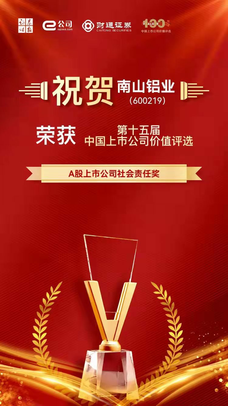 9月28日,由證券時(shí)報(bào)社主辦、財(cái)通證券特約協(xié)辦的“第十五屆中國上市公司價(jià)值評(píng)選”榜單揭曉,南山鋁業(yè)榮獲“A股上市公司社會(huì)責(zé)任獎(jiǎng)”。