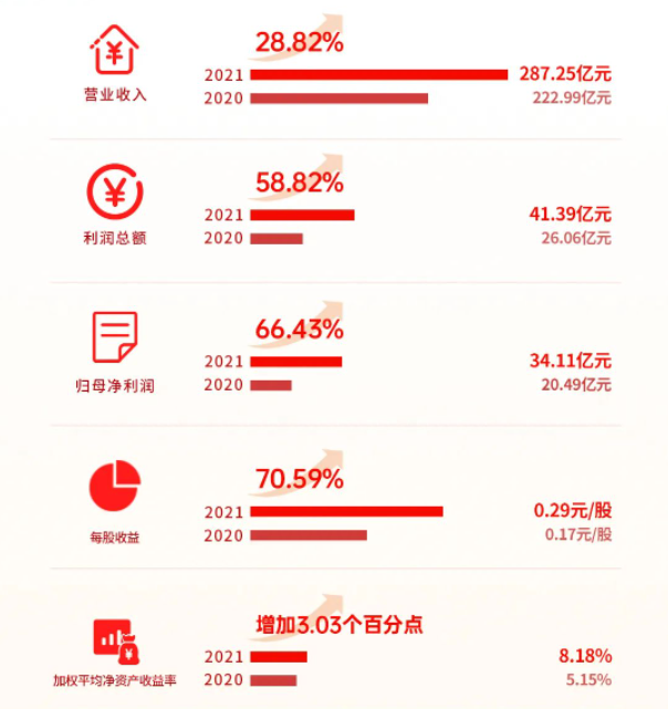 2021年,公司全年實(shí)現(xiàn)營(yíng)業(yè)收入287.25億元,同比增長(zhǎng)28.82%。實(shí)現(xiàn)歸母凈利潤(rùn)34.11億元,同比增長(zhǎng)66.43%;實(shí)現(xiàn)每股收益0.29元/股,同比增長(zhǎng)70.59%,業(yè)績(jī)保持穩(wěn)健增長(zhǎng)的良好態(tài)勢(shì)。與此同時(shí),公司還通過(guò)創(chuàng)新驅(qū)動(dòng),不斷夯實(shí)和釋放公司在高端鋁材加工領(lǐng)域的“先發(fā)優(yōu)勢(shì)”,拓寬和加深企業(yè)的“護(hù)城河”,真正做到領(lǐng)跑未來(lái),力爭(zhēng)為股東創(chuàng)造更大回報(bào)。