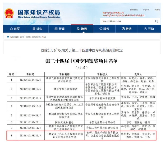 9月4日,煙臺市市場監(jiān)督管理局公布2022年度煙臺市高價值專利培育中心建設(shè)單位名單,山東南山鋁業(yè)股份有限公司位列其中。